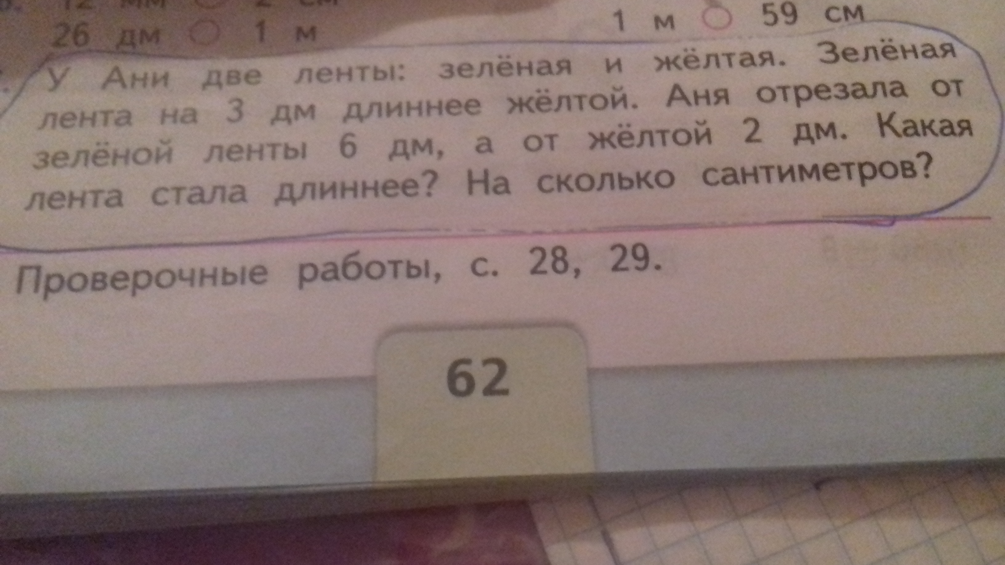 6-2=4 на столько уменьшилась зеленая лента по отношению к желтой
