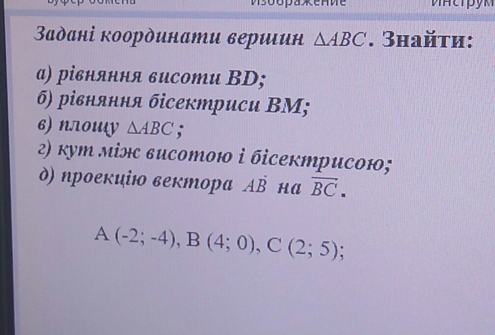 Даны вершины треугольника: А(-2;-4), В(4;0), С(2;5).