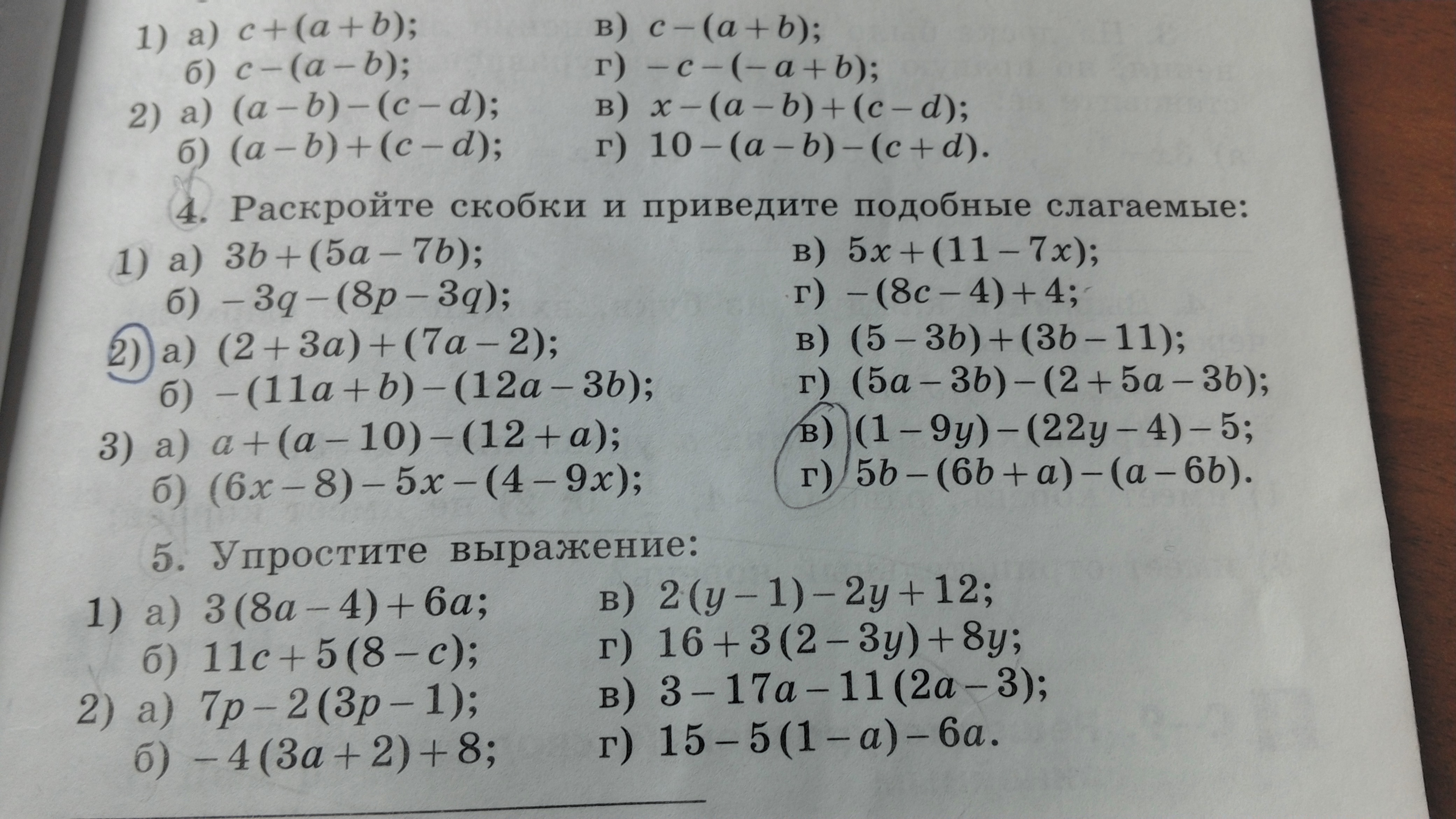 Г 5b-(6b+a)-(a-6b) = 5b-6b-a-a+6b= подобные слагаемые -6b и +6b зачеркиваем т. к. получается 0, -а и -а = 5b - 2а