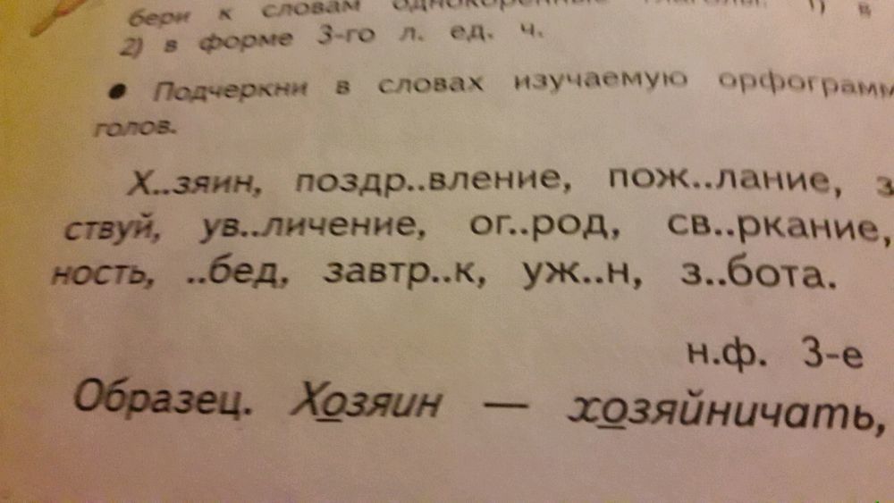 Запиши слова в алфавитном порядке,вставляя буквы. Подбери к словам однокоренные глаголы: 1. В неопределенной форме. 2 в форме 3-го л.ед.ч.