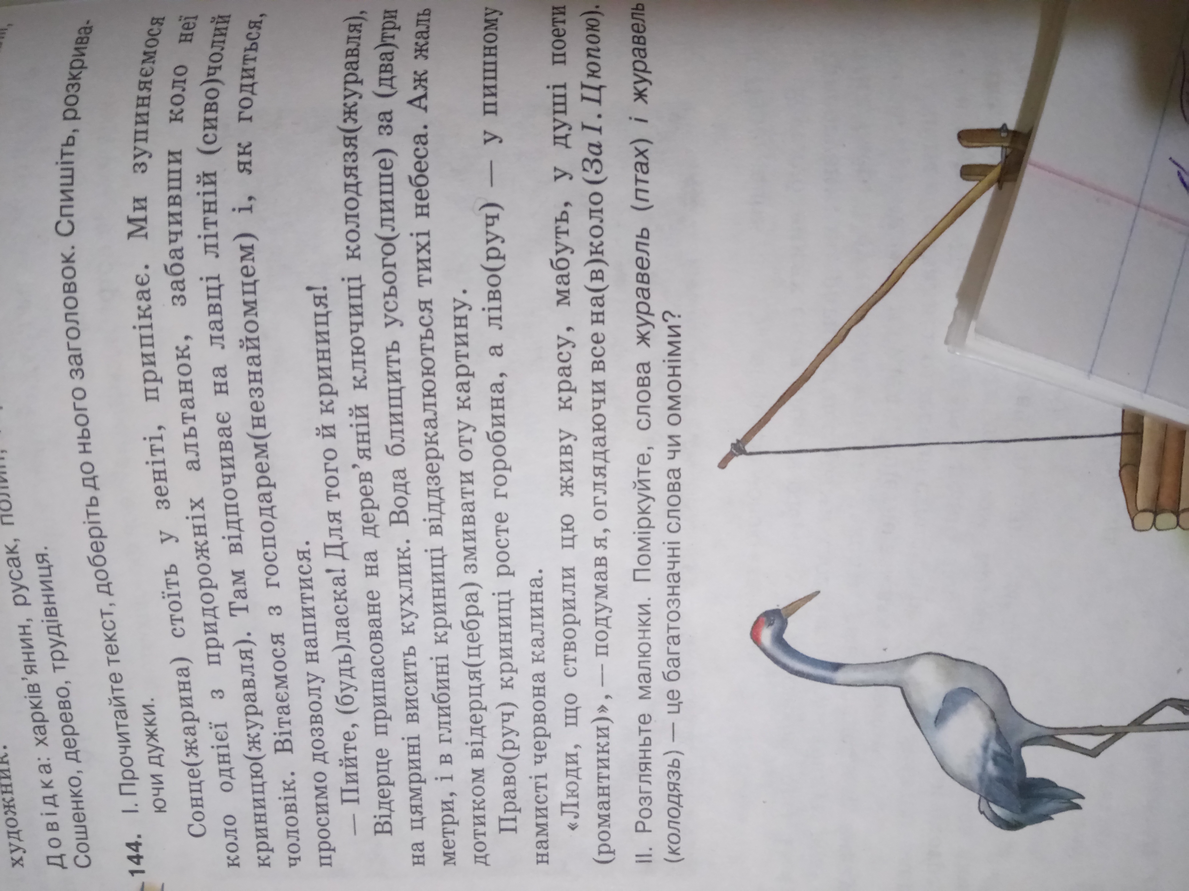 ЛЕГКО!!!Пиши Вправа 144 (Сонце стоїть у зенці припікає)Там написано спишіть розкриваючи дужки ты не разкрывай просто пиши и место слова Жарина пиши чтобы подходило например так Не видно (село) .Не видно села .)))
