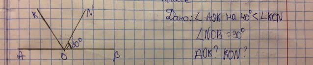 Пусть AOK это х, следовательно KON это х+40° (на сколько я поняла по дано)