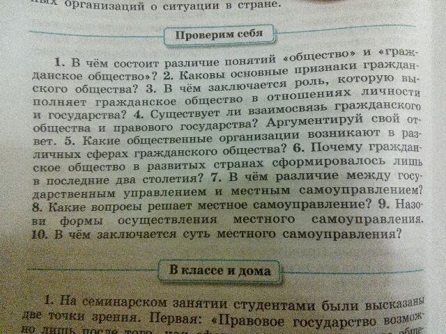 4) Да, существует. Гражданское общество, политическое общество или государство считалось взаимозаменяемыми терминами. Участвовать в гражданском обществе означает-участвовать в политической жизни, т.е. в жизни государство, а это значит, что гражданин должен жить по законам, и не нарушать права другого гражданина, а это лежит в основе принципов правового государство