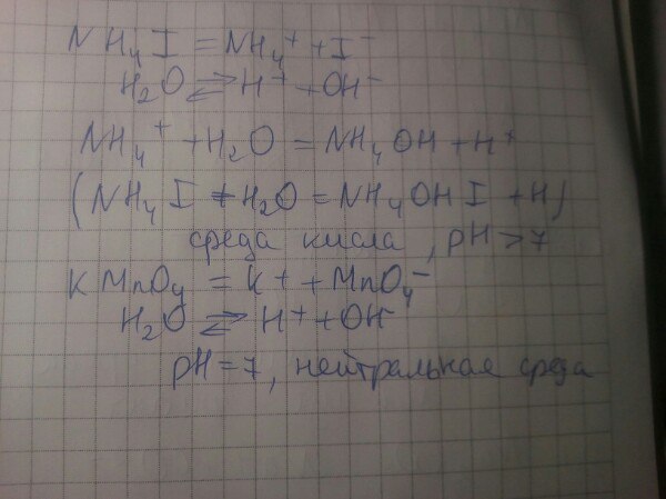 Добавила ещё тот гидролиз NH4I, так как тогда ошиблась. Прошу прощения(