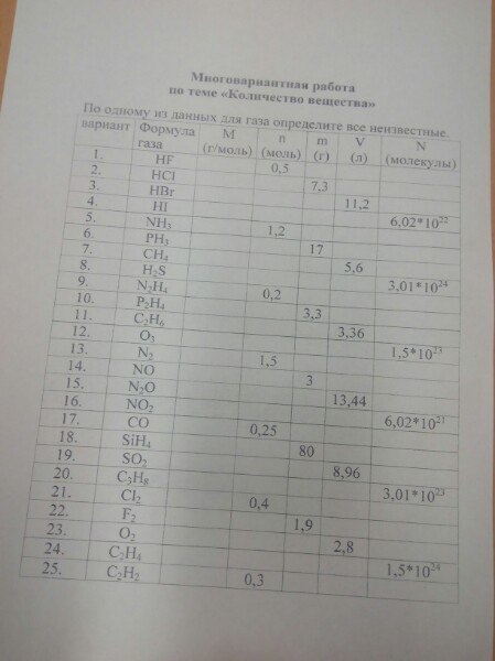 m - масса вещества, M - его молярная масса (М ищем у Менделеева)
