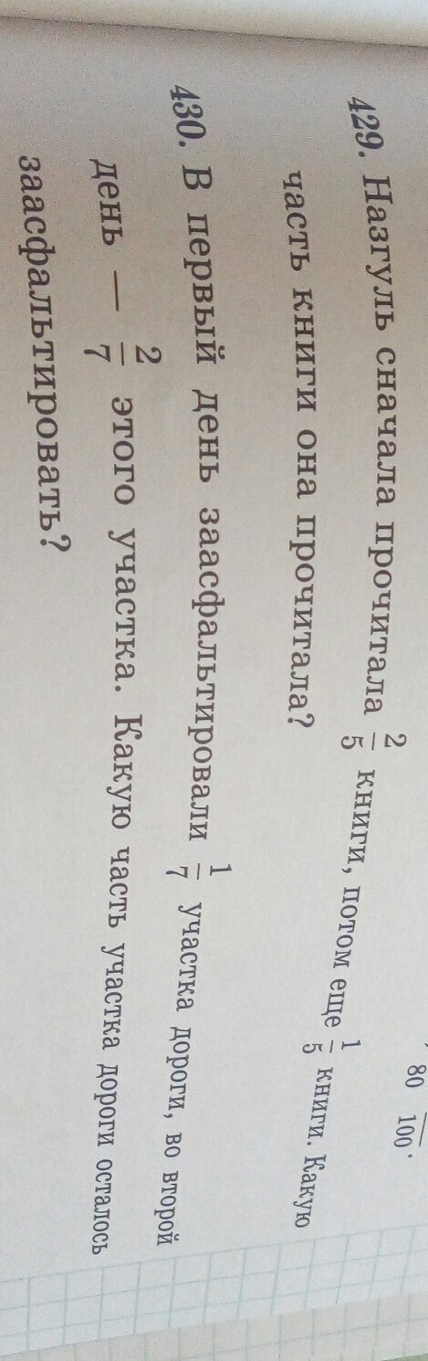 429. 2/5+1/5=3/5 (книги) - прочитала Назгуль
