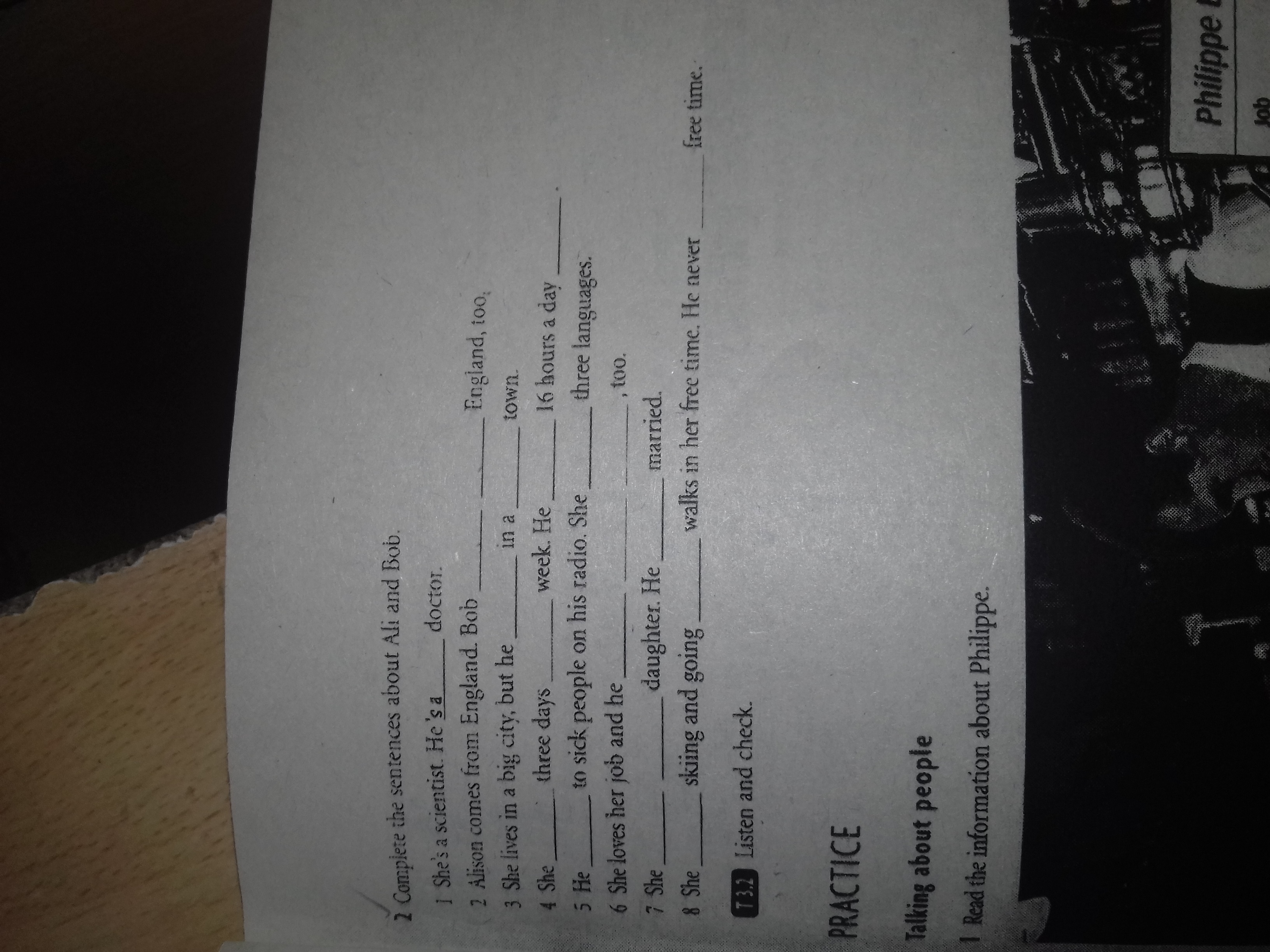 тут возможно нужно по тексту делать, так как в 4 и 5 может быть несколько вариантов. Без текста вполне правильный ответ дан. Только что второе слово в 5 speaks скорее всего, а в 4 последнее слово без текста не понятно