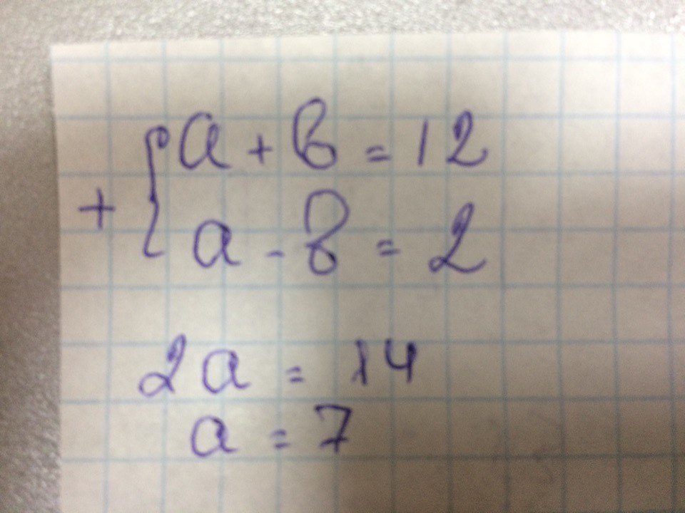 Упустили. a=-b+12 a=b+2 -b-2=-b+12 2a=-b+b+12+2 2a=14