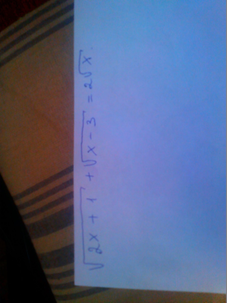 V(2x+1) = 2Vx - V(x-3), возводим обе части равенства в квадрат: