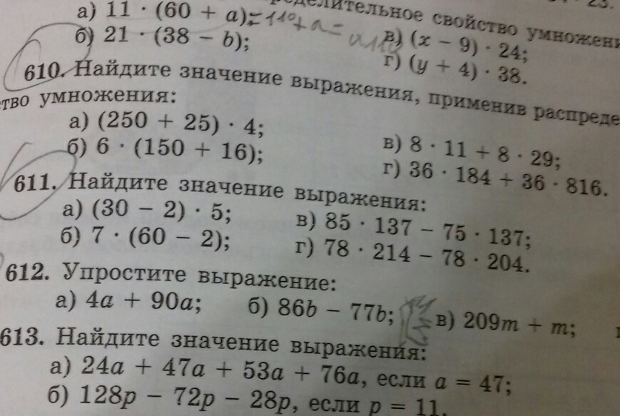 б) 6 × (150 + 16) = (6 × 150) + (6 × 16) = 900 + 96 = 996