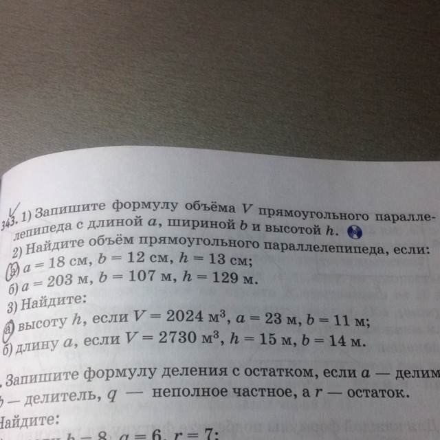 Объём прямоугольного параллелепипеда равен длина умноженная на ширину и умноженная на высоту. V= a*b*h