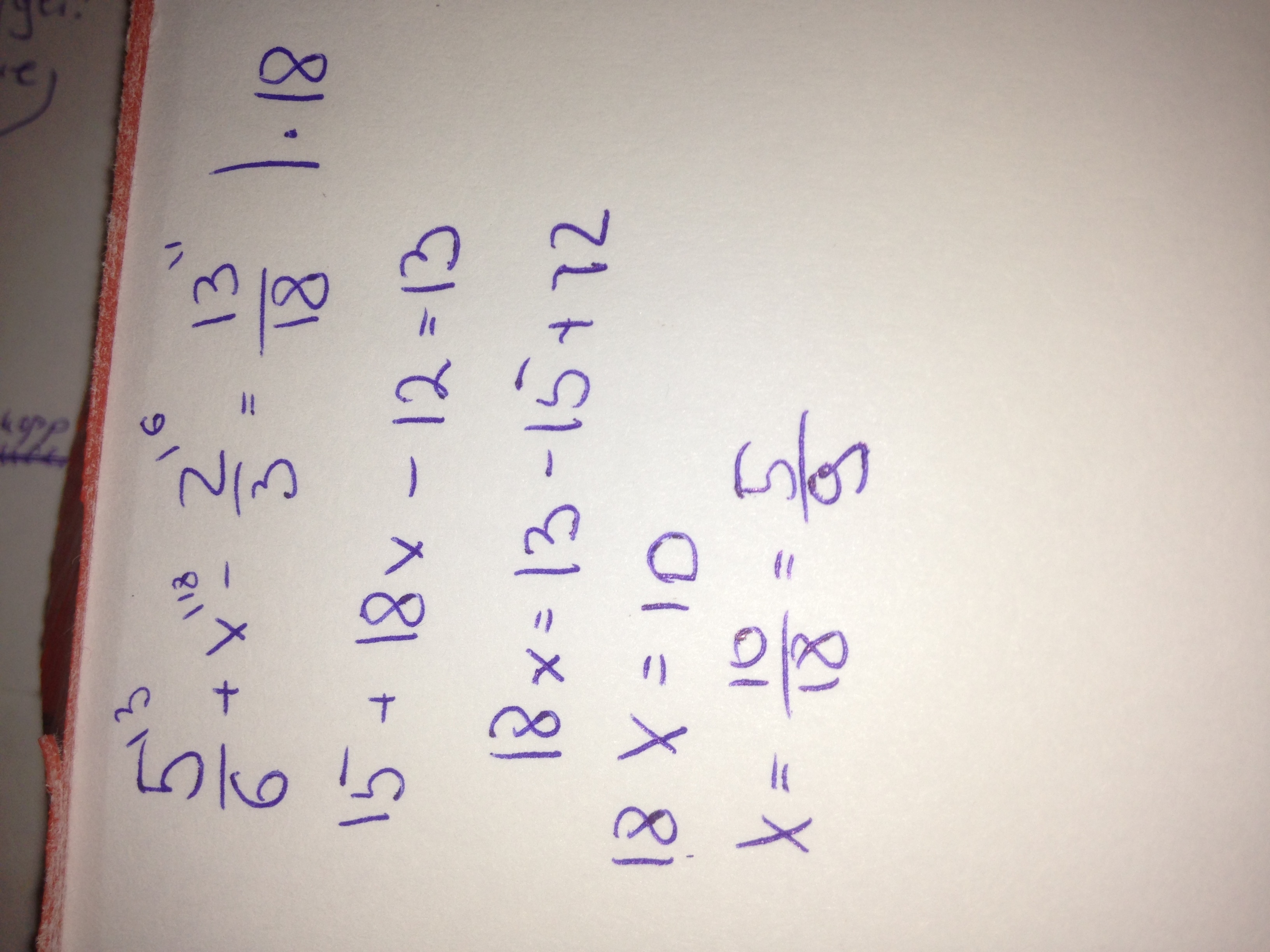 х=13/18+2/3-5/6 Общий знаменатель 18