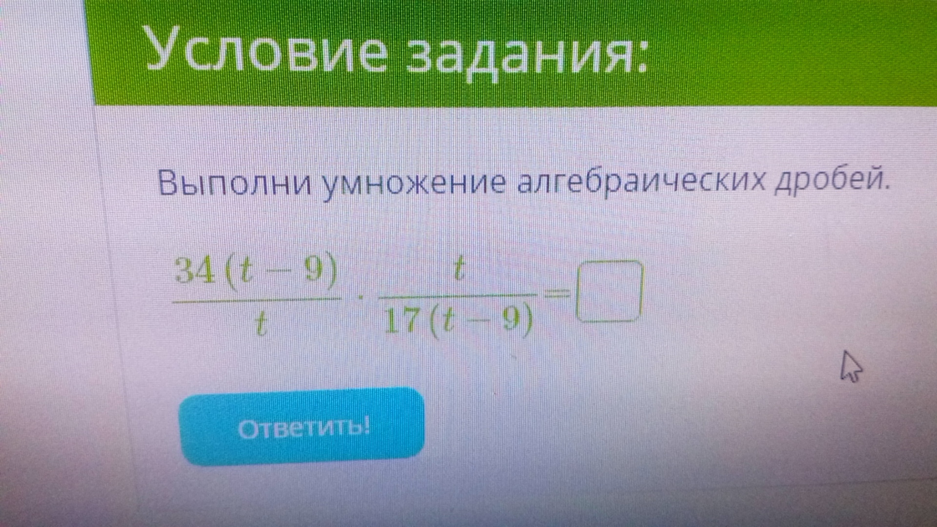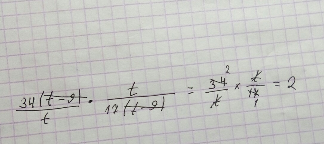 34(t-9)*t / t*17(t-9)= 2