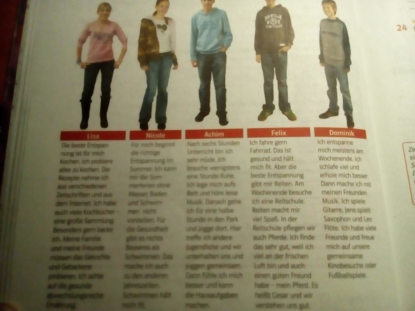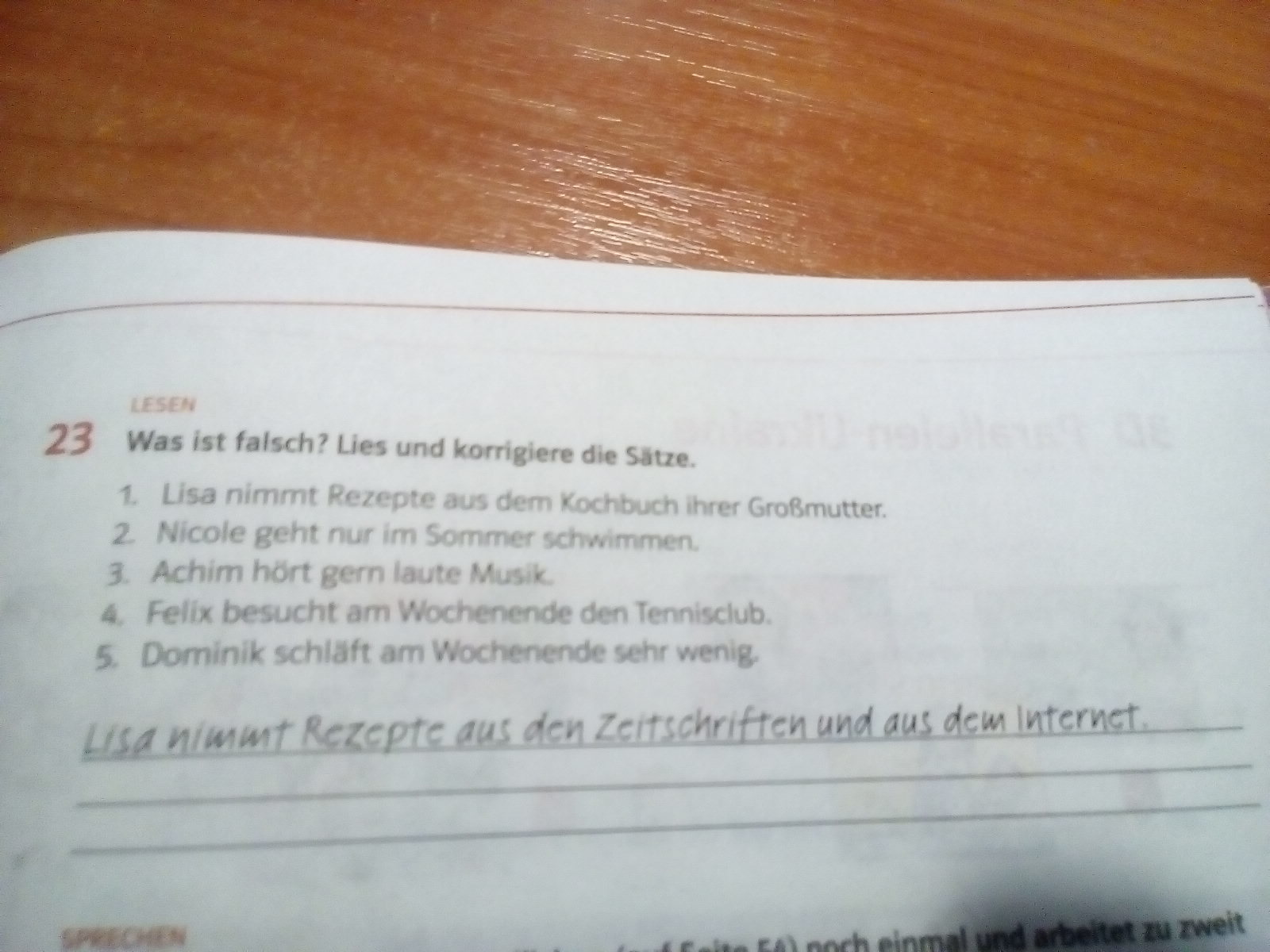 Ответ: Nein, Lisa nimmt ihre Rezepte aus verschiedenen Zeitschriften, aus dem Internet und aus den Kochbüchern. Da ist aber kein Kochbuch ihrer Großmutter dabei. Нет, Лиза берет рецепты из различных журналов, интернета, а также из поваренных книг. Но среди них нет поваренной книги ее бабушки.
