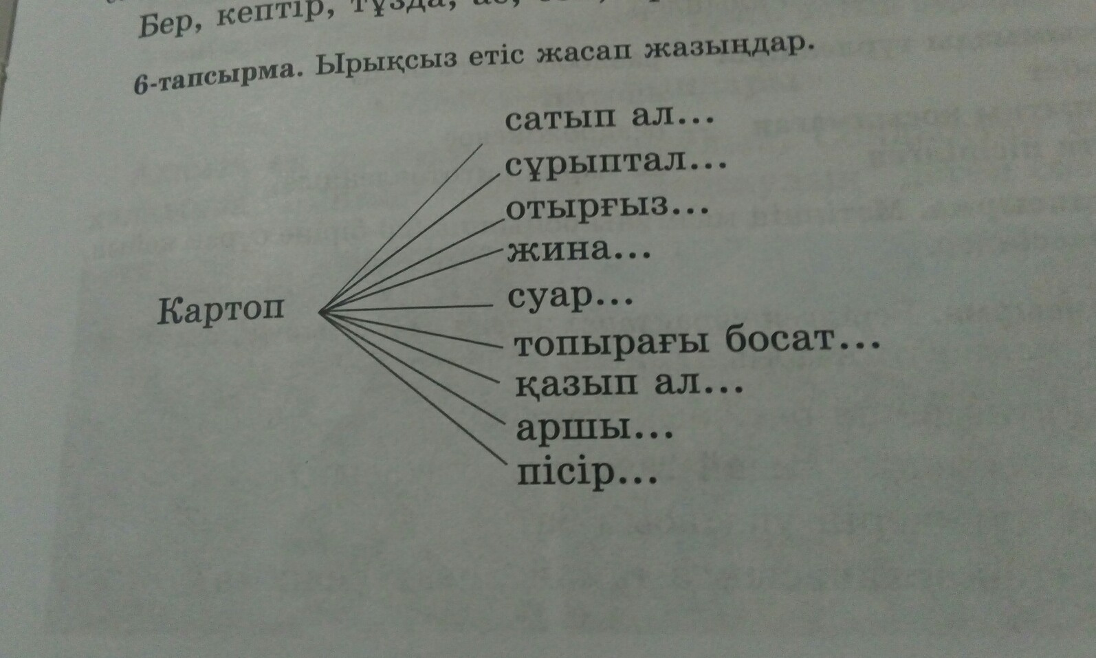 Сатып алынды,сурыпталынды,отыргызылды,жиналды,суарылды,топырагы босатылды,казылды,алынды,аршылды,писирилди