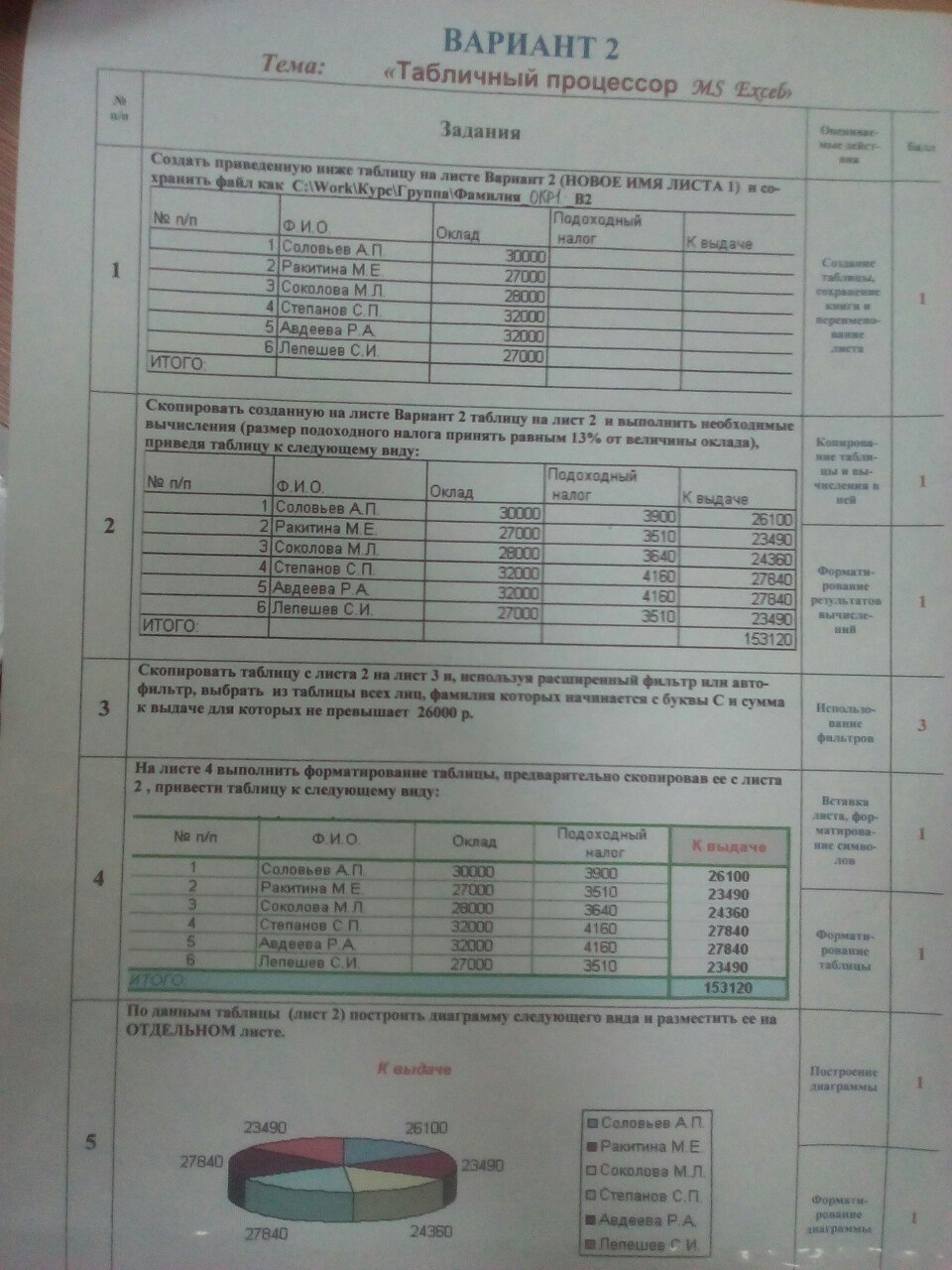 Из столбца "Оклад" вычесть столбец "Подоходный налог".