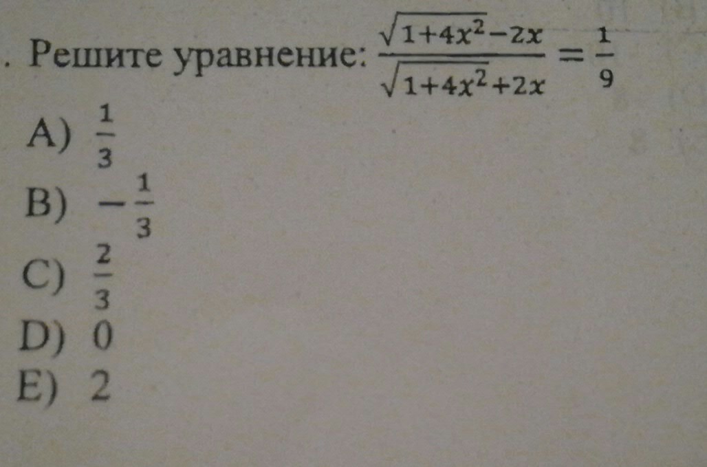 x₁=2/3 x₂=-2/3∉ вследствие возведения в степень (1).
