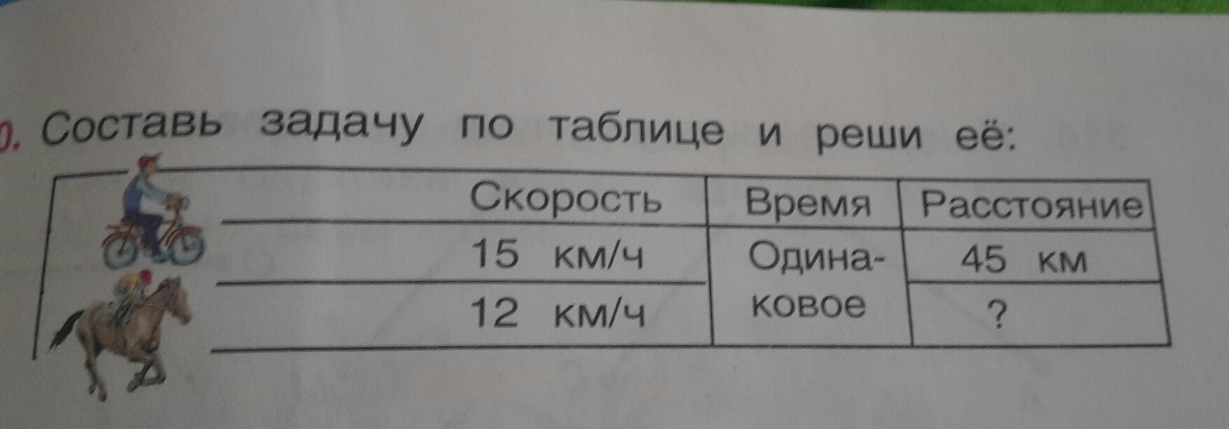45/15=3 узнали время за которое проехал мотоциклист, ткак как их время одинаковое, то есть 3=3, находим расстояние скакуна, время умножаем на скорость 3*12=36