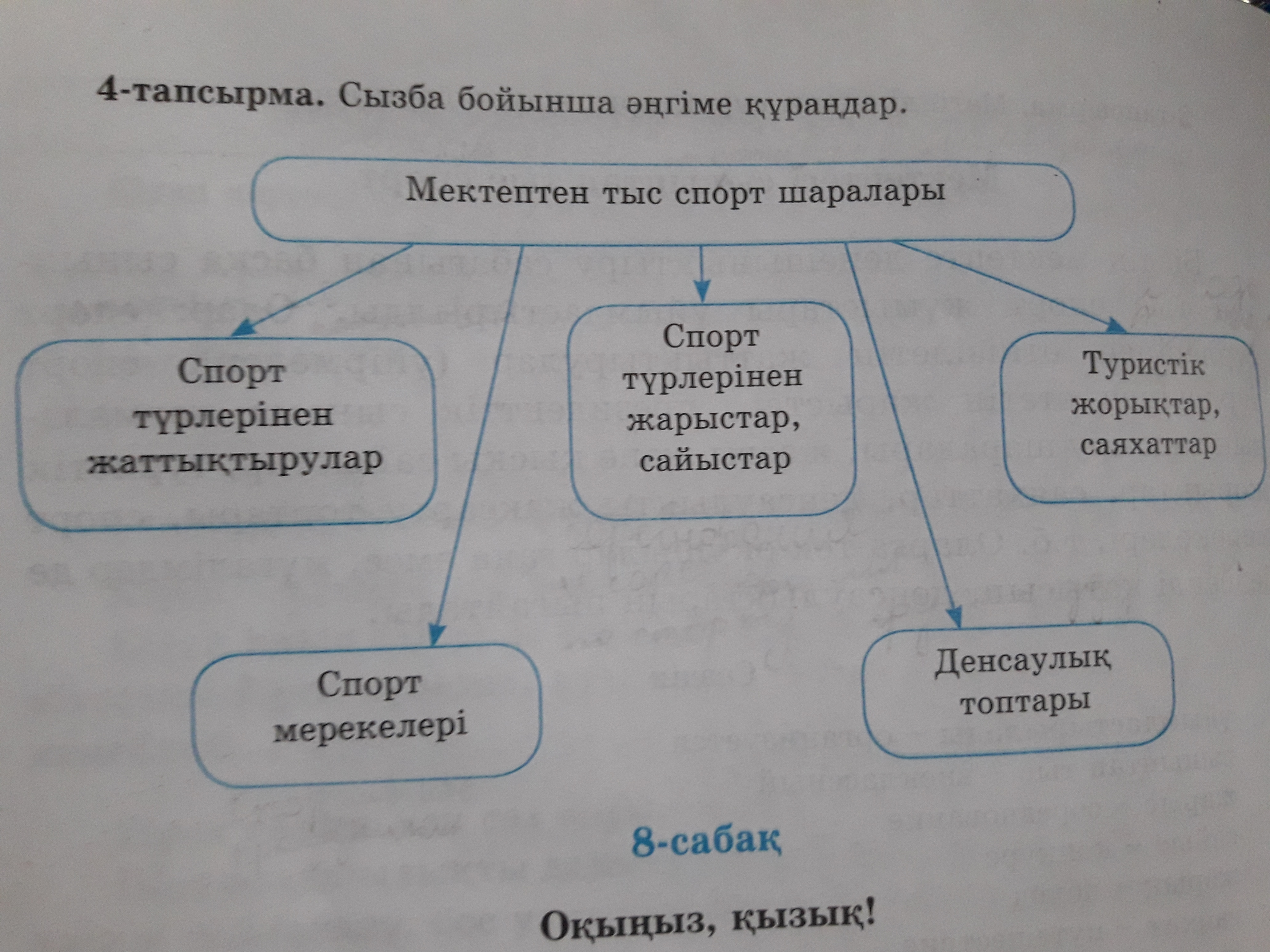 Спорт денсаулық кепілі Спорт әрбір адамның өмірінде маңызды рөл атқарады. Себебі адамның денінің сулығы тікелей спортпен байланысты. спорттың адамға беретін пайдасы мол мысалға денең шымыр, иммунитет жоғары, адамның төзімділігі артады, және таза ауада шынығу адамның миының жұмысын жақсартады. Қазіргі жасөспірімдер спортпен шұғылданатын болса олардың денсаулықтары жақсарып, шыдамдылығы пайда болады