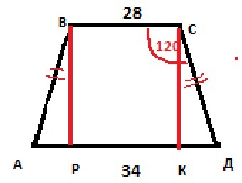 Найти боковые стороны равнобедренной трапеции,основания которой равны 34 см и 28 см,если один из углов 120 градусов
