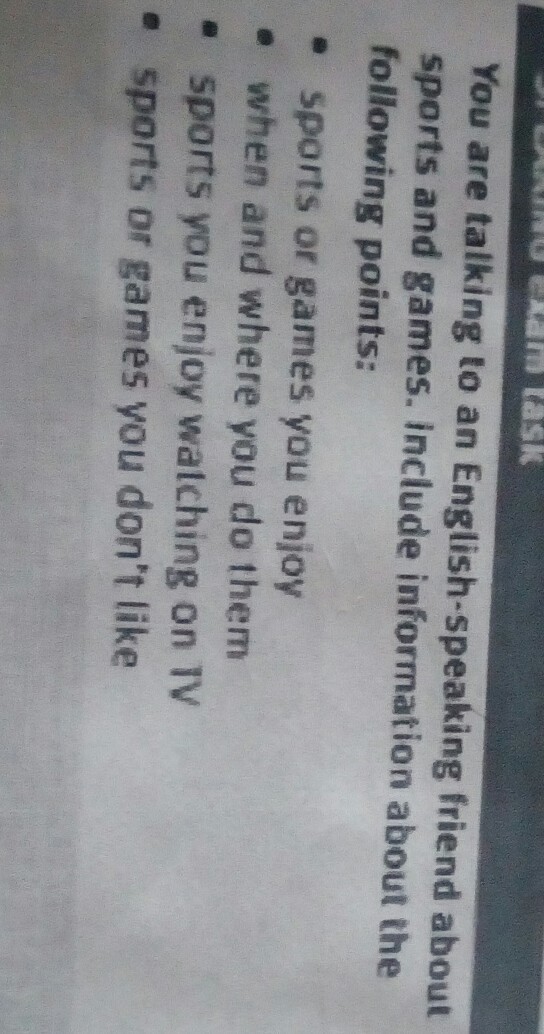 I enjoy riding my bike, because it's good to spend your free time with fun. Also, I like to play football with my friends. I ride my bike every day in summer at the park and I play football every Saturday or Sunday, if the weather is nice. We play football behind our school, on football field. I enjoy watching ice skating on TV, because i think, that this sport is the most beautiful and graceful. I don't like tennis and pool, because they're so boring, especially pool- it's too long and it's hard to understand, what is happining.