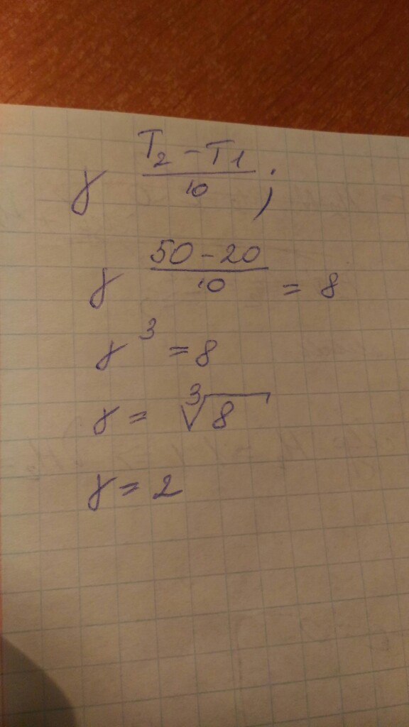 Скорость некоторой реакции при температуре изменении от 20 до 50 , изменилась на 8 раз.Чему равен темп кафициента этой реакции