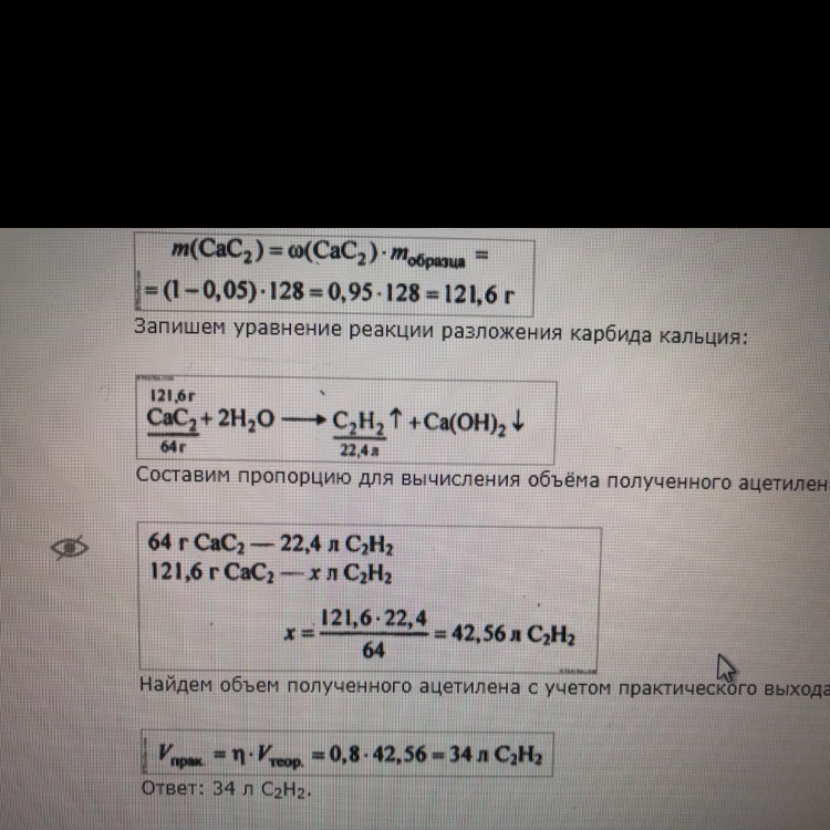 НАПИШИТЕ ТОЛЬКО УСЛОВИЕ ! Рассчитайте объем ацетилена, который может быть полу-чен из 128 г карбида кальция, содержащего 5% примесей, если выход ацетилена составляет 80% от теоретически возможного.