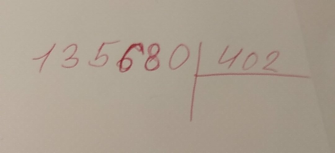 сначала после столбика 135680-1206=150 и 8 сносим =1508-1206=302 0 сносим =3020-2814=206 остаток