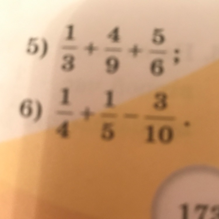 5) 1/3+4/9+5/6=6/18+8/18+10/18=24/18=1 6/18= 1 1/3