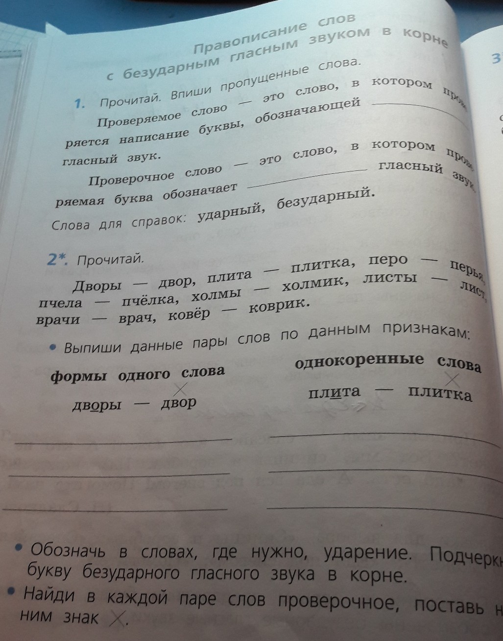 2) В 1 столбик Двор-Дворы, лист-листы, врач-врачи. Во 2 столбик перо-перья, пчела-пчёлка, холмы-холмик, ковёр-коврик