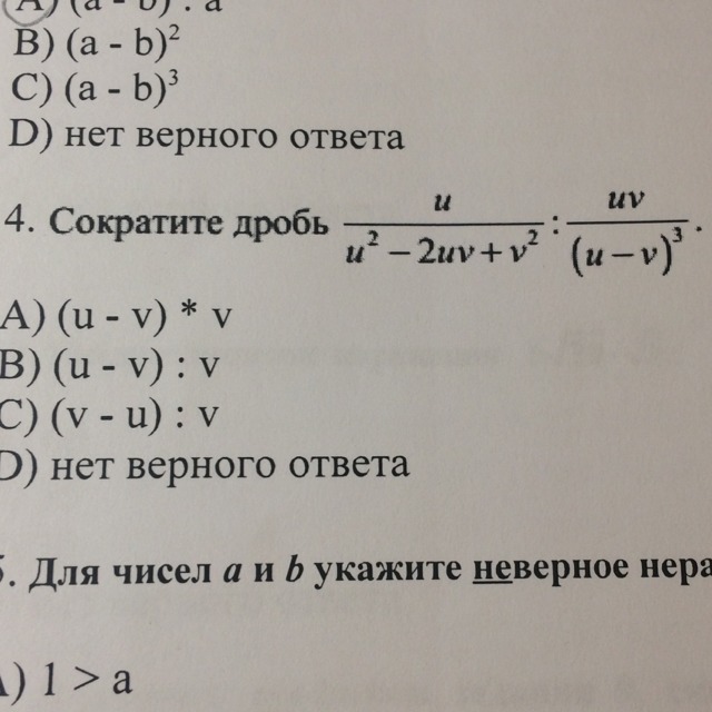 Сократите дробь u/u^2-2uv+v^2:uv/(u-v)^3