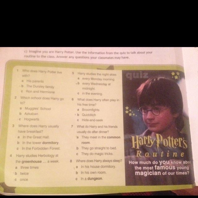 1. С кем живет Гари Поттер? -b) С семьей Дарзлей