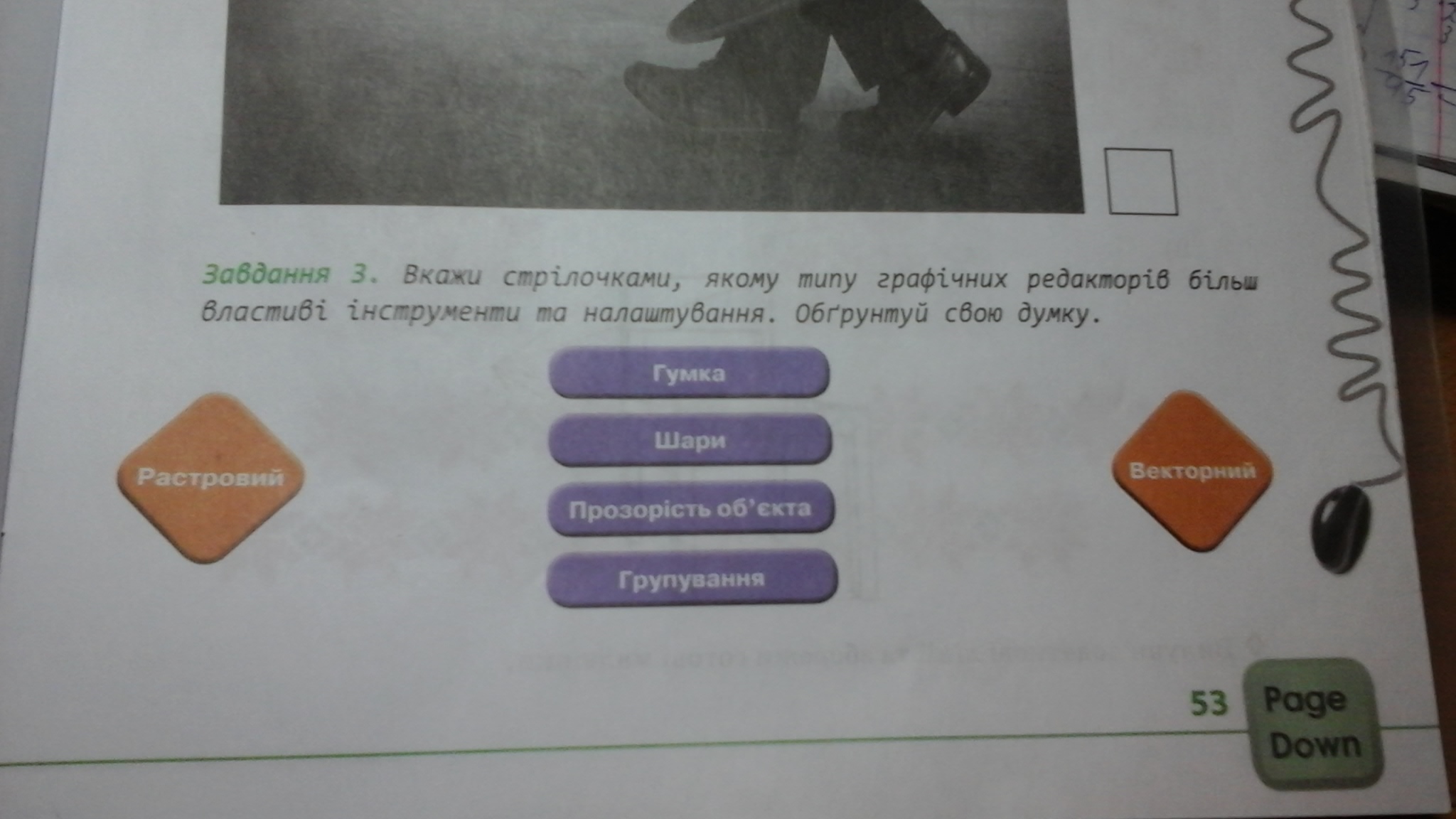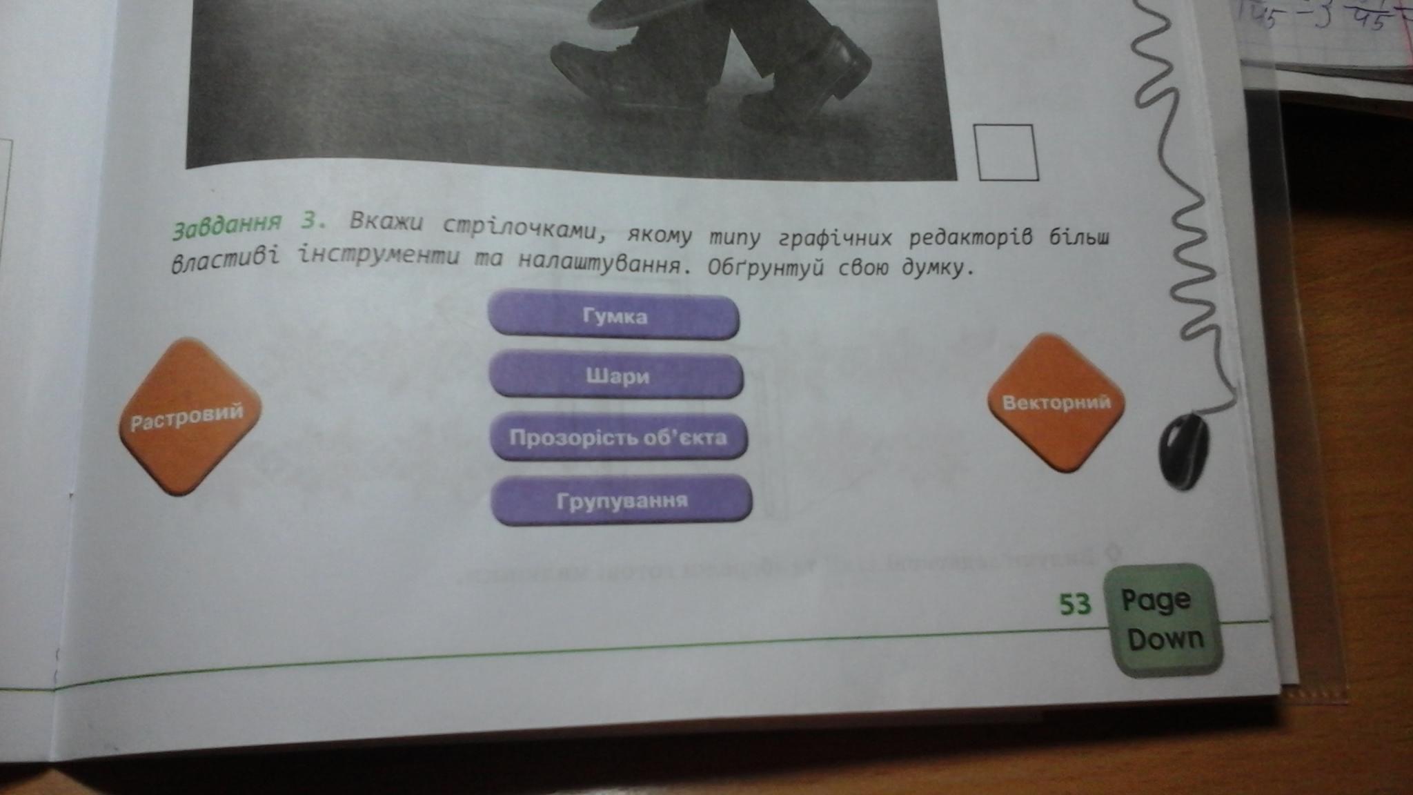 Задание 3. Укажи стрелками ,какому типу графических редакторов более свойственны инструменты и настройки :резинка,шары,прозрачность объекта,группировки?