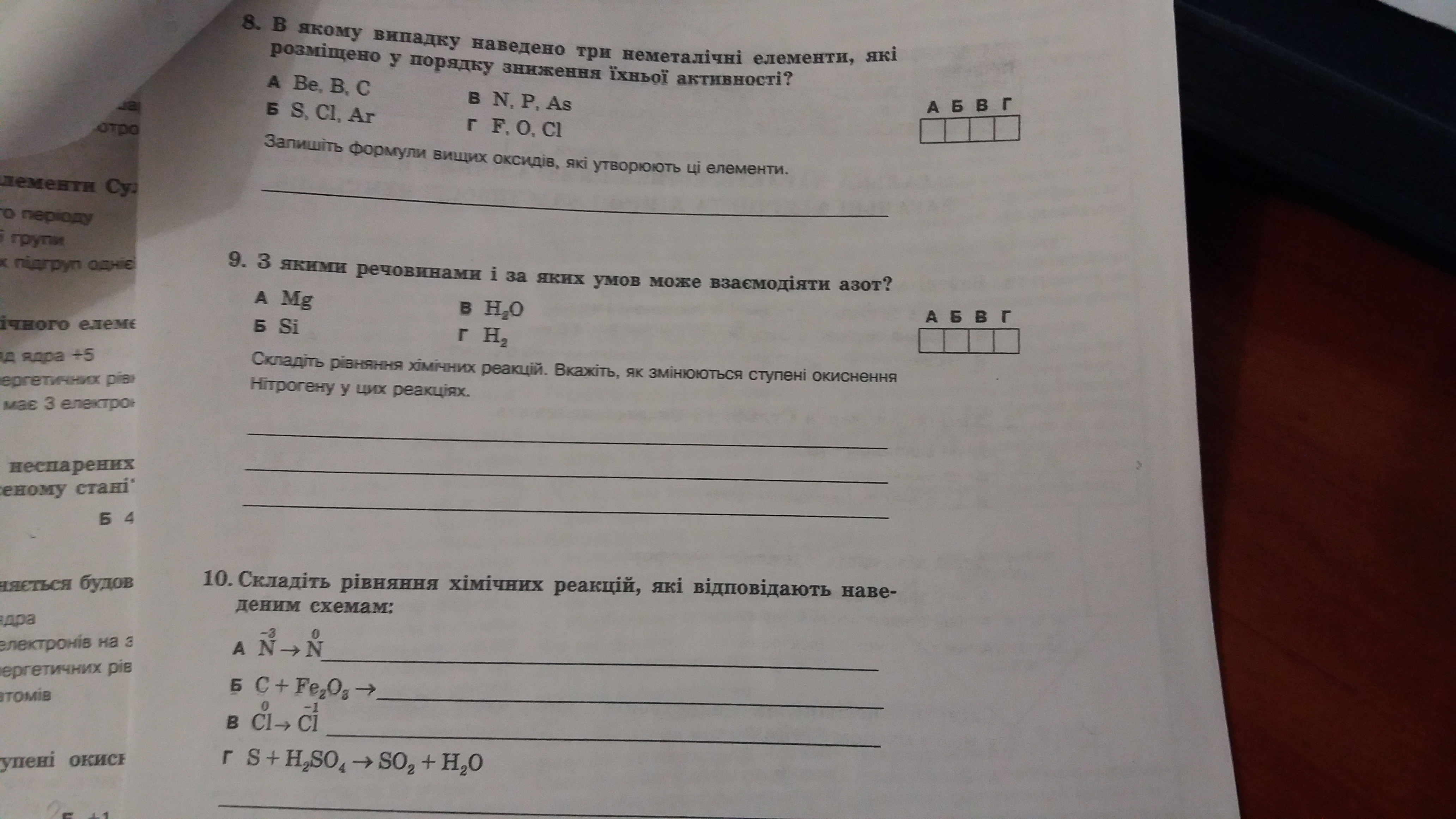 9) не особо поняла что за задание ( если не правильно , извините ) - с какими 3 из четырёх реагирует : с Mg , Si и H2 :