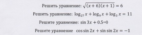 {bf 3)sin(3x)+0.5=0} \ \ <br />sin(3x)=-0.5 \ \ <br />3x=  left { {{frac{7 pi}{6}+2 pi n} atop {frac{-pi}{6} + 2 pi n}} right \ \ <br />x=left { {{frac{1}{18}(12 pi n+7 pi)} atop {frac{1}{18}(12 pi n - pi)}} right