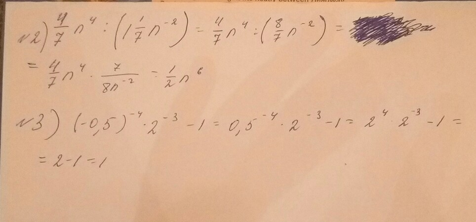 2. 4/7n⁴ : (8/7n⁻²) = 1/2n⁶