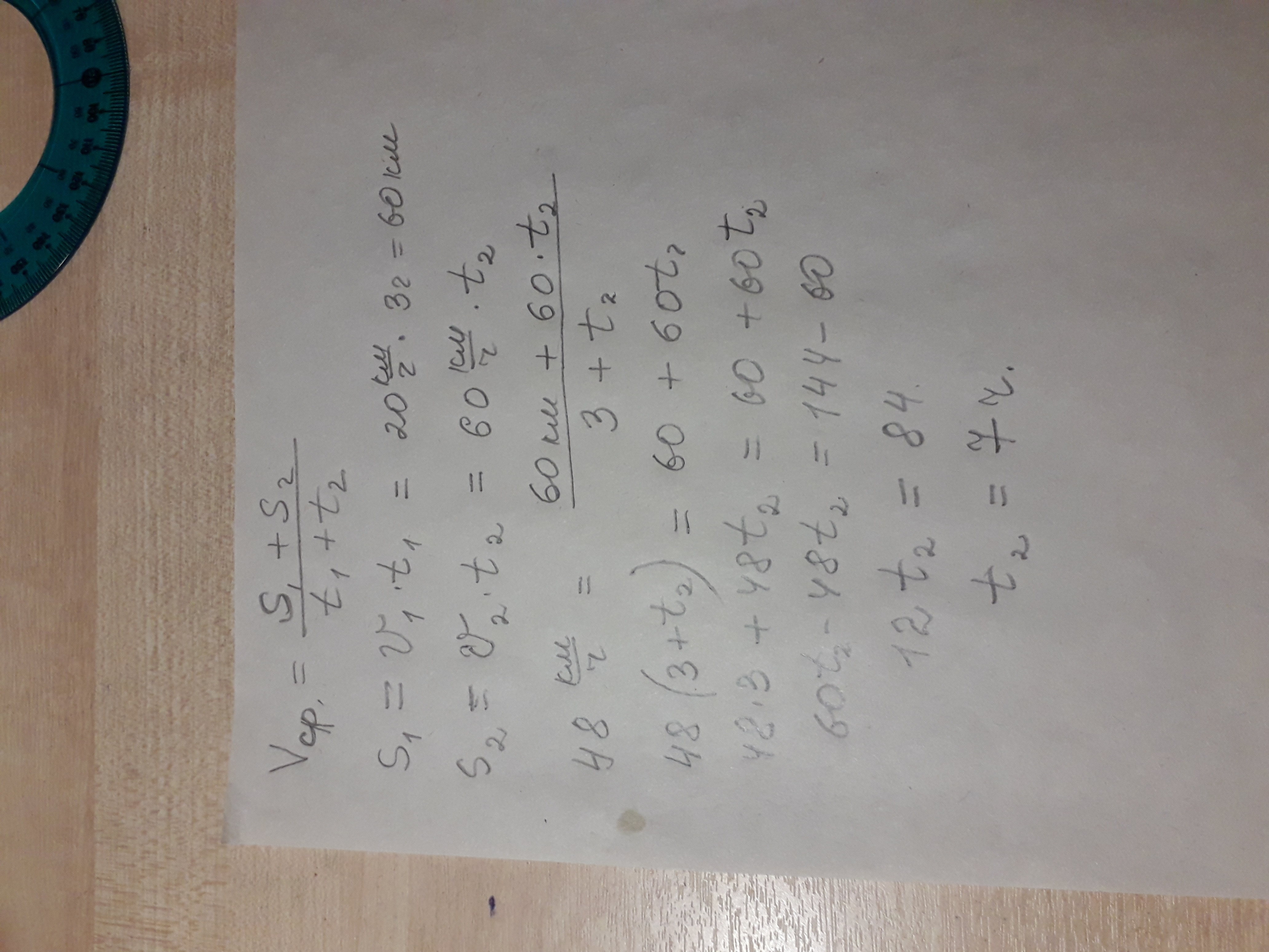 человек ехал 3ч со скоростью 20км/ч а потом несколько часов на мотоцикле со скоростью 60км/ч.Какое время он ехал на мотоцикле если Vсрд.-48 км/ч