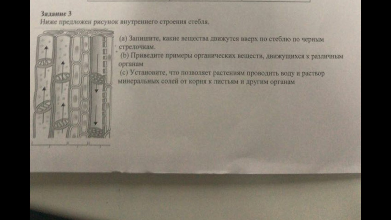Вверх по стеблю движется от корня вода и минеральные соли. К разнаыс органам движутся такие органичесаие вещества как глюкоза, крахмал. Вода и мин соли двигаются за счет корневого давления