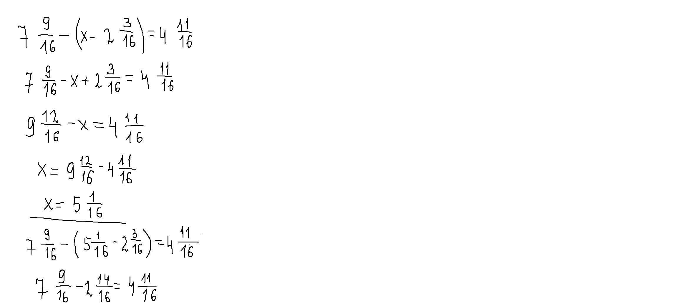 7 9/16 - (х - 2 3/16) = 4 11/16