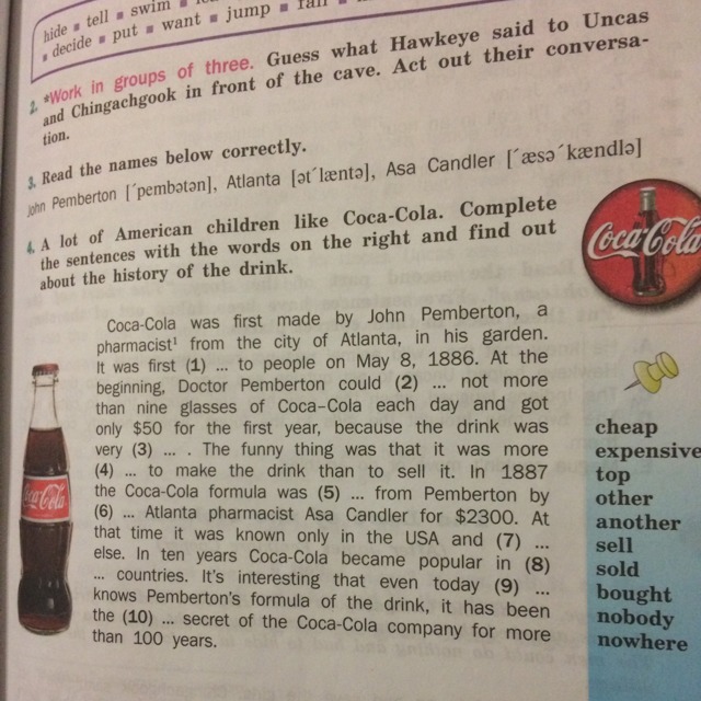 A lot of American children like Coca-Cola .Complete the sentences with the words on the right and find out about the history of the drink