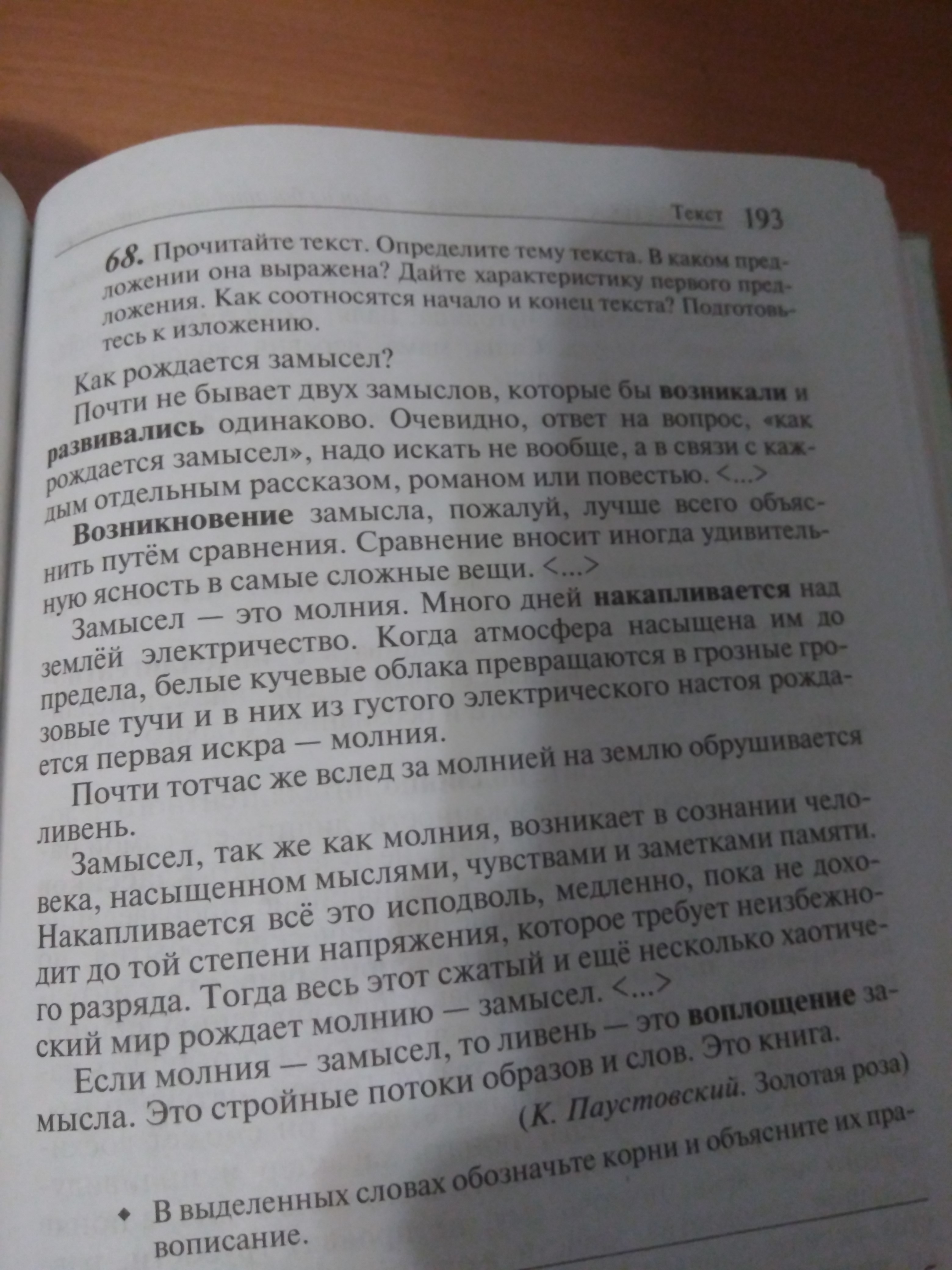 Тема - рождение замысла. Предложение: замысел, так же как и молния, возникает... Первое и последнее предложения связаны между собой словом замысел и синонимичными словами книга, рассказ, роман, повесть.