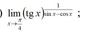 lim_{x to  frac{ pi }{4} } (tgx)^ frac{1}{sinx-cosx} = lim_{x to  frac{ pi }{4} } (((1+(tgx-1))^ frac{1}{tgx-1} )^{tgx-1})^ frac{1}{sinx-cosx}=\