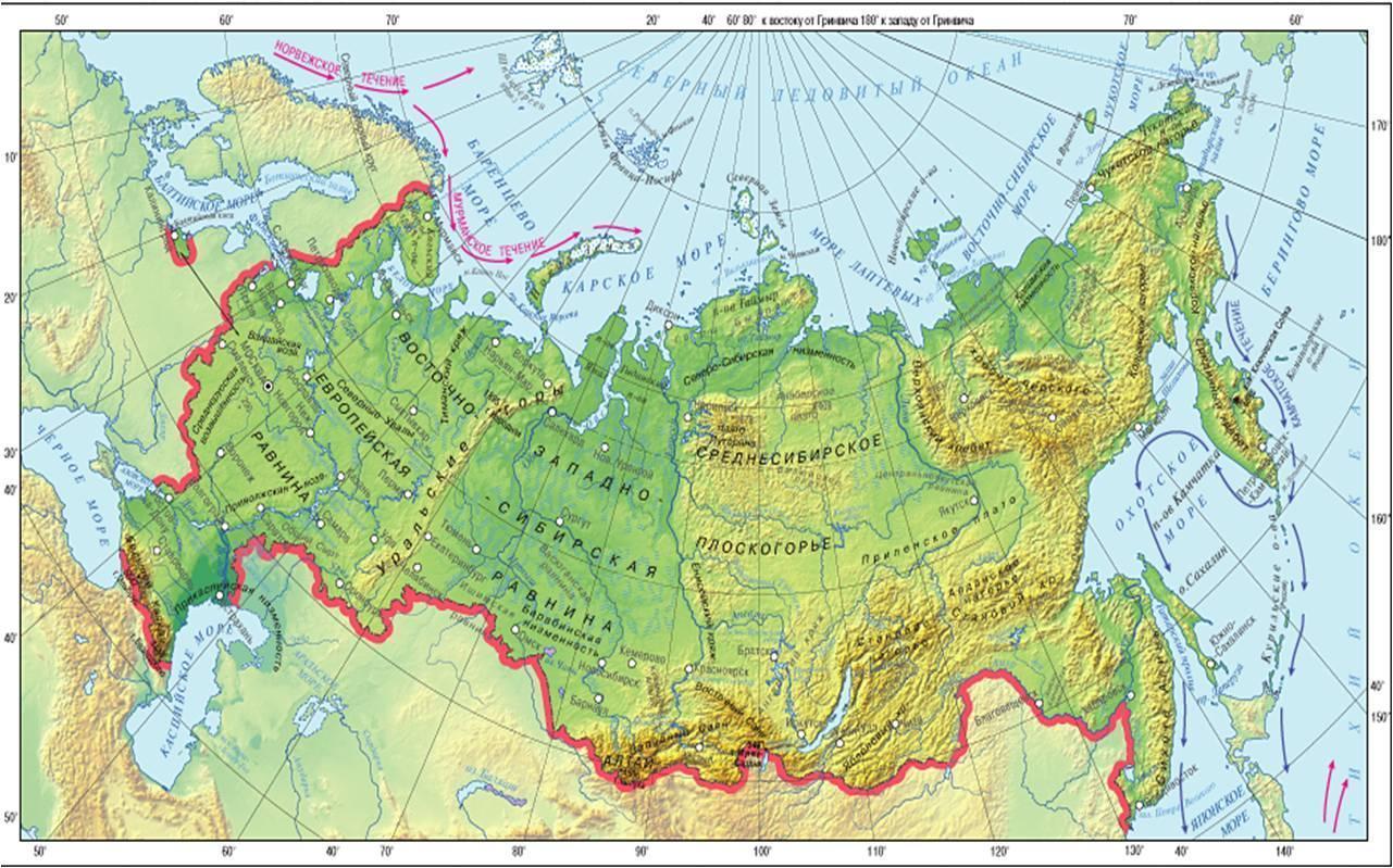 Если посмотреть на физическую карту России,которая дана ниже в приложении,то можно увидеть,что в основном горы расположены на юге,юго-востоке и востоке страны.Это связано с тектоническим строением России.На юге расположены молодые Кавказские горы,стрые горы Алтай и Саяны,на юго-востоке Становой хребет,горы Сихотэ-Алинь,на востоке Верхоянский хребет,хребет Черского,Чукотское и Корякское нагорье,Срединный хребет.