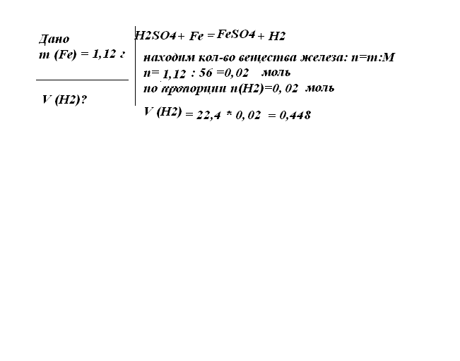 Железо массой 1,12г растворили в серной кислоте. Вычислить объём образовавшегося водорода! Помогите плиз!