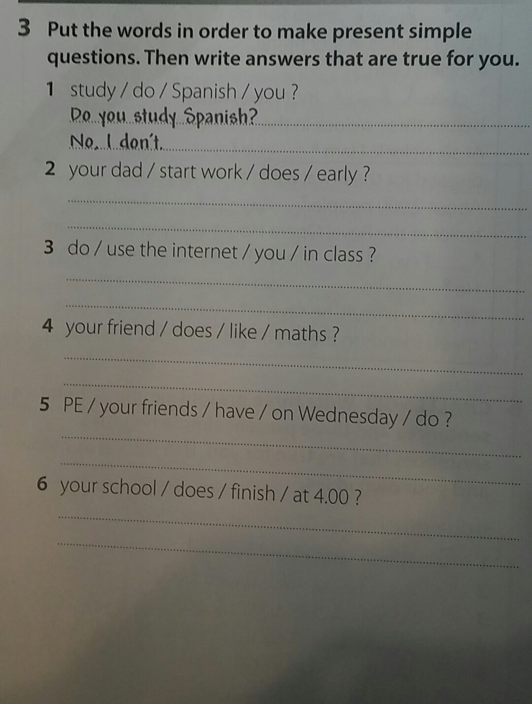 5)Do your friends have PE on Wednesdey?