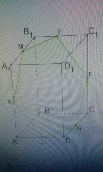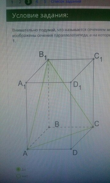 Внимательно подумай, что называется сечением многогранника, и определи, на которых рисунках изображены сечения параллелепипеда, а на которых нет.