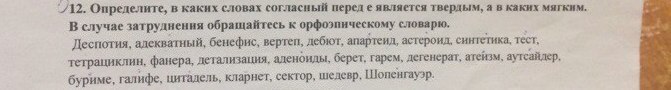 Мягкие: деспотия, бенефис, вертеп, дебют, тетрациклин, детализация, берет, гарем, дегенерат, сектор