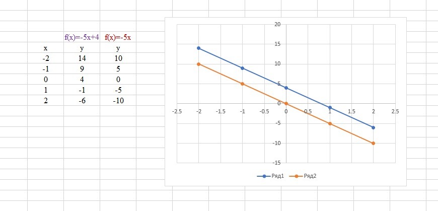 Задайте форму линейной функции график которой параллельный прямой y=-5x+4 и проходит через начало координат