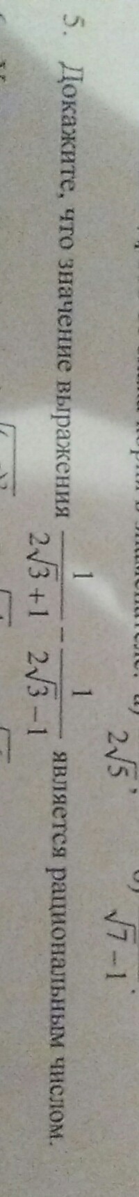 Обе броби домножаете числитель и знаменатель на сопряженное, то есть перву ю на 2 корня3 -1, а вторую на 2 корня3 +1,