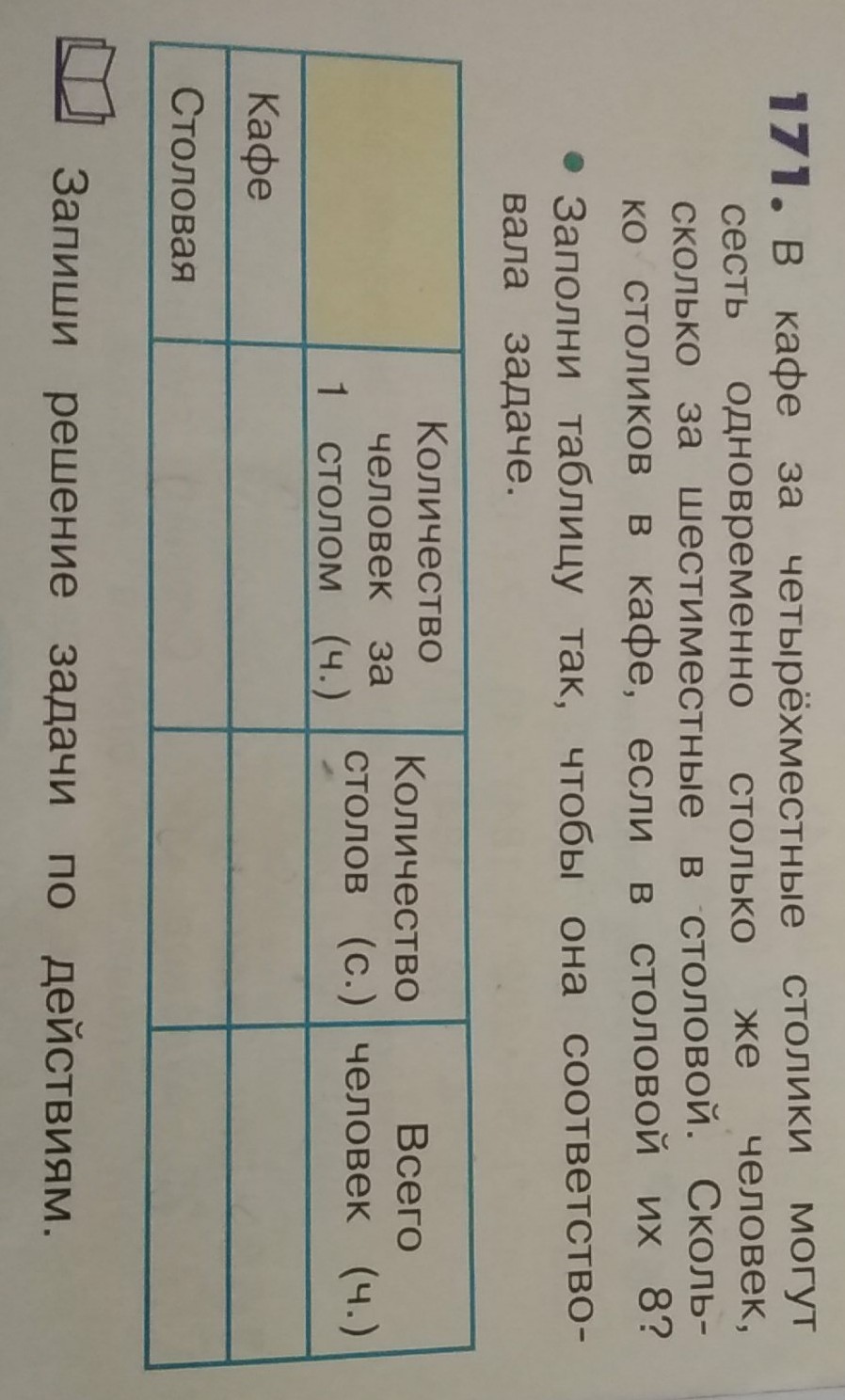 1) 6*8=48 (чел) - могут сесть в столовой за столики